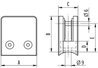 GLASHOLDER, Satin slebet lakeret Glas beslag dimensioner se tegning: