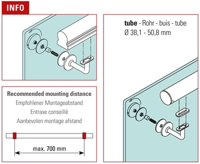 - Perfekt løsning, hvor håndlisten skal monteres direkte på glasplader.