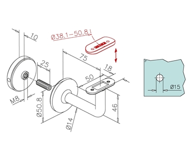 Denne elegante håndlisteholder er designet specielt til montering i glas, f.eks. glasrækværk, glasvæg eller glasbalustrade. Med den medfølgende adapterplade kan du montere både Ø38 mm og Ø50 mm stålrør samt Ø45 mm træhåndlister, hvilket gør løsningen fleksibel og alsidig.