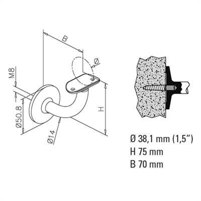 Denne elegante håndlisteholder er designet til montering af runde stålrør i Ø38 eller Ø50 mm eller træhåndlister i Ø45 mm. Den har skjulte skruehuller, hvilket giver et meget rent og minimalistisk udtryk – perfekt til moderne interiørløsninger, hvor æstetik og detaljer betyder noget.