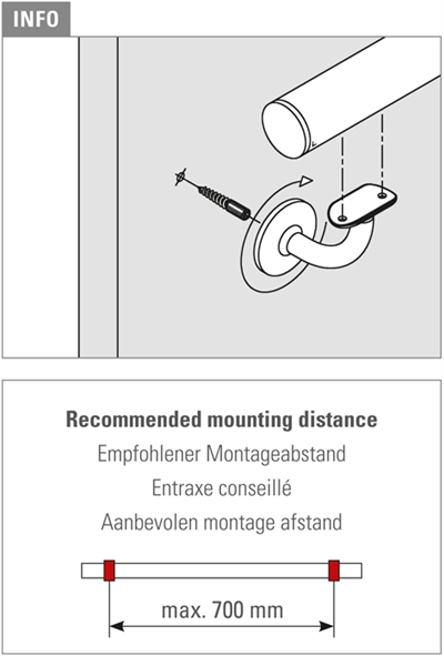 Håndlisteholderen fås i poleret messing, krom og rustfri stål. Uanset finish leverer den høj styrke, flot visuel fremtoning og lang holdbarhed, hvilket gør den ideel både til private og kommercielle installationer.
