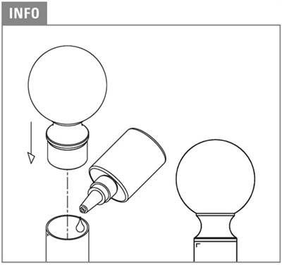 Denne dekorative endeafslutning er designet til montering på rør og gelændere, hvor der ønskes en flot og gennemført afslutning. Den limes ind i røret og sidder derfor sikkert og plant. Den elegante kugleform giver installationen et eksklusivt udtryk og tilfører både stil og karakter – uanset om afslutningen bruges i private eller kommercielle miljøer.