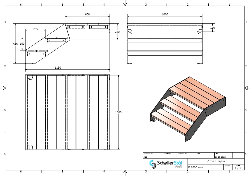 - 3 stigninger á 180mm (Anbefalet trinhøjde)