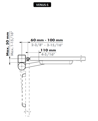 VENUS-S: Med lige arm, hvis monterings stolen er mindre end 50 mm forskudt fra lågen.